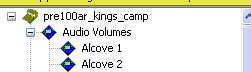 Sounds that we will assign to audio volumes are available in the object inspector window. When you click on an audio volume, the object inspector for that audio volume will come up allowing you to select sounds and assign them to the volume.