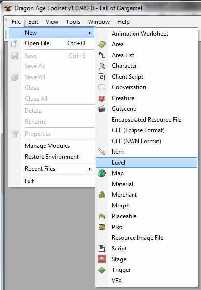 The toolset titlebar should now reflect the Fall of Gargamel as the active module. If you were to close and reopen the toolset it would default to last module you were working in.