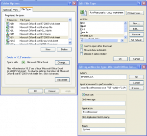 - In the File Types tab, select the XLS extension from the list and click the Advanced button.