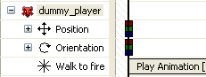 Новый трек по умолчанию будет называться «New Track», и он будет пустым. Актеры в катсценах иногда будут иметь дюжину треков, управляющих их действиями, по этому, мы хотим переименовать этот трек на что-нибудь немного более информативное. В нашем случае, мы присвоим ему имя «Walk to fire». Что бы фактически актера заставить идти к огню, мы должны добавить ему действе "Play animation" (играть анимацию). Что бы сделать это, нужно правой кнопкой мыши щелкнуть на треке и в меню выбрать «Add Action» (добавить действие).