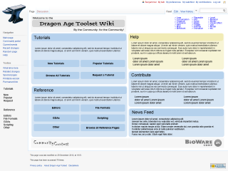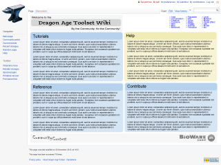 Some potential Main Page redesigns for discussion in the Dragon Age Toolset Wiki Editors group: